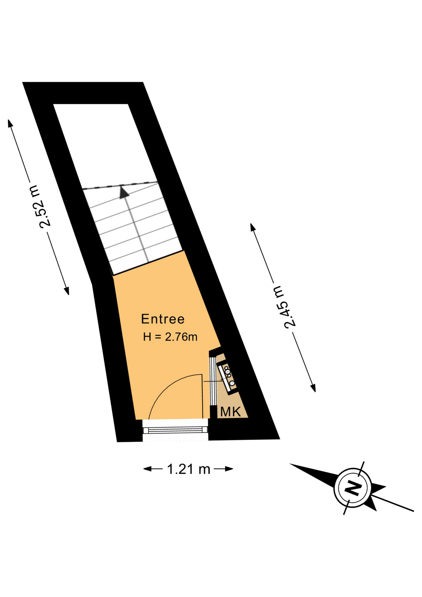 Begane grond: entree met meterkast en trap naar het bovenhuis.